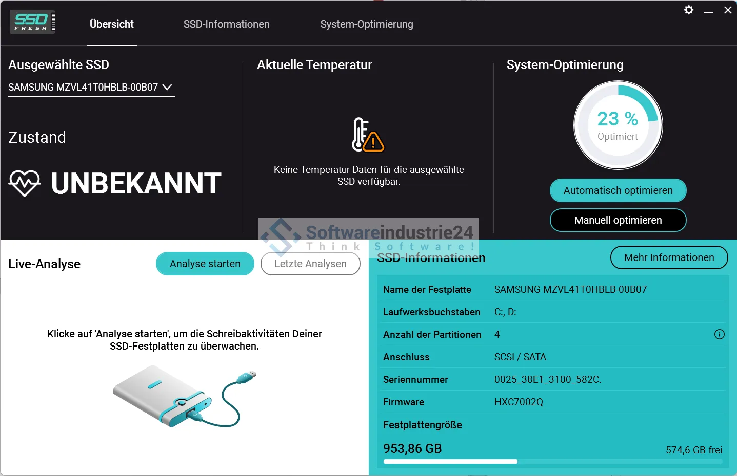 • Überwachung der SSD-Gesundheit: SSD Fresh überwacht den Zustand Ihrer SSD und informiert Sie über mögliche Probleme.