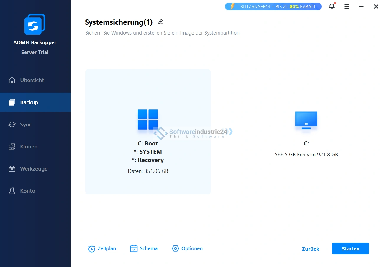 Mit der Software können Sie vollständige Backups Ihrer Festplatten oder einzelner Partitionen erstellen. Diese Funktion ist besonders nützlich, wenn Sie eine große Menge an Daten sichern möchten oder wenn Sie bestimmte Partitionen separat sichern möchten.