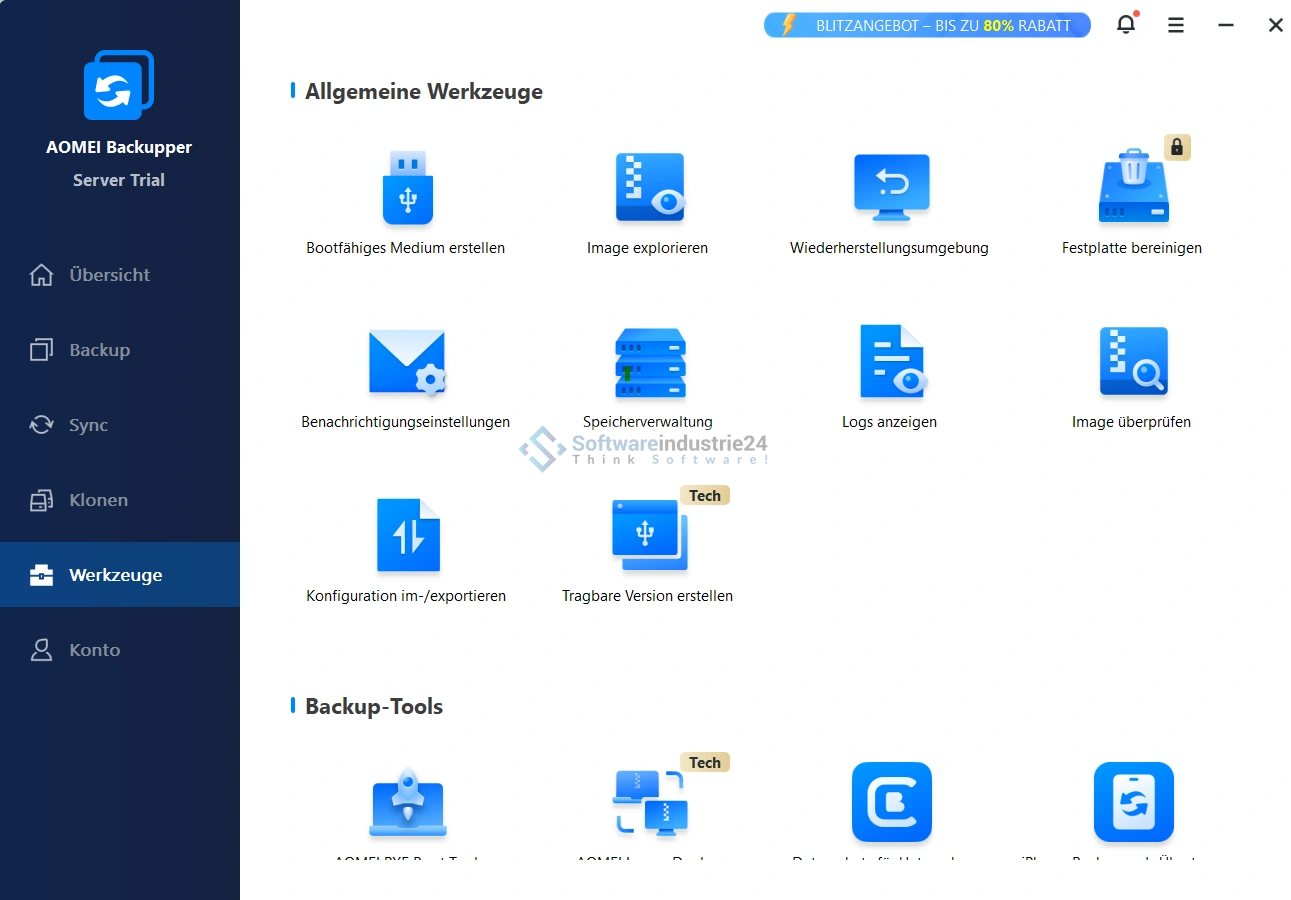 Die Software ermöglicht es Ihnen, ein bootfähiges Medium (z.B. USB-Stick oder CD/DVD) zu erstellen, mit dem Sie Ihren Server starten und Ihr System oder Ihre Daten im Falle eines Systemabsturzes wiederherstellen können.