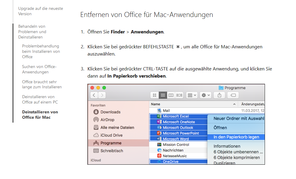 - Deinstallieren Sie das aktuelle Microsoft Office Programm auf Ihrem MAC.