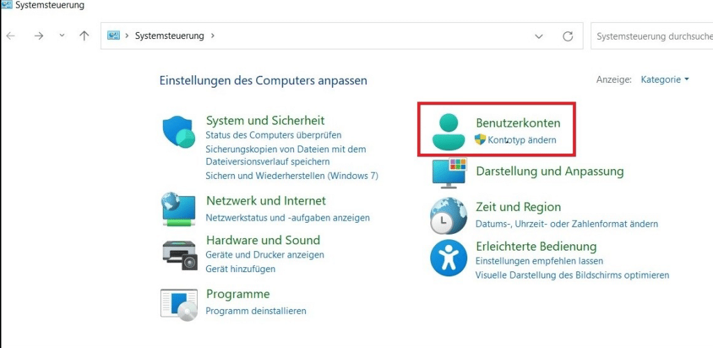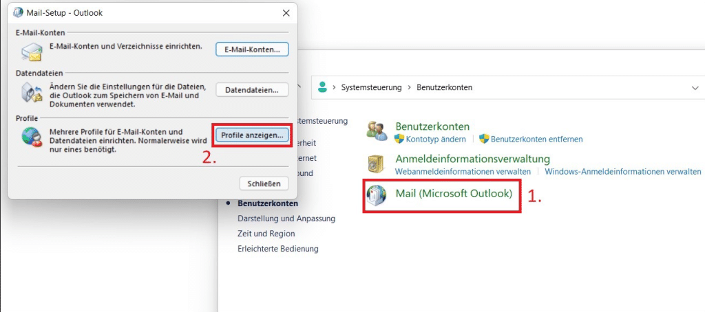 - Klicken Sie auf „Benutzerkonten“ und dann auf „Mail (Microsoft Outlook)“.
