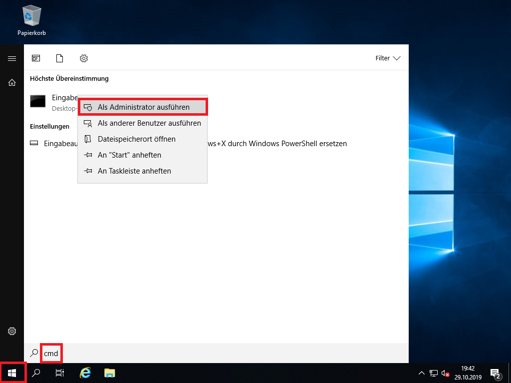 Klicken Sie auf ,,Start“, geben Sie ,,cmd“ ein und führen Sie es als Administrator aus.