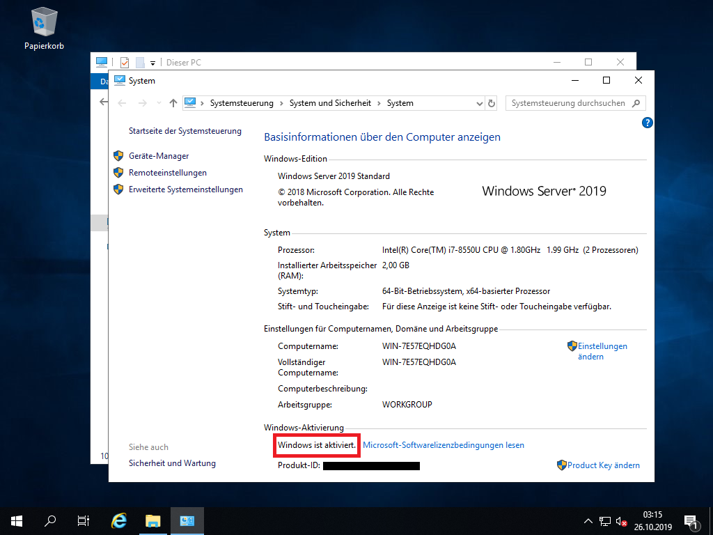- Herzlichen Glückwunsch! Ihr Windows Server wurde erfolgreich aktiviert.