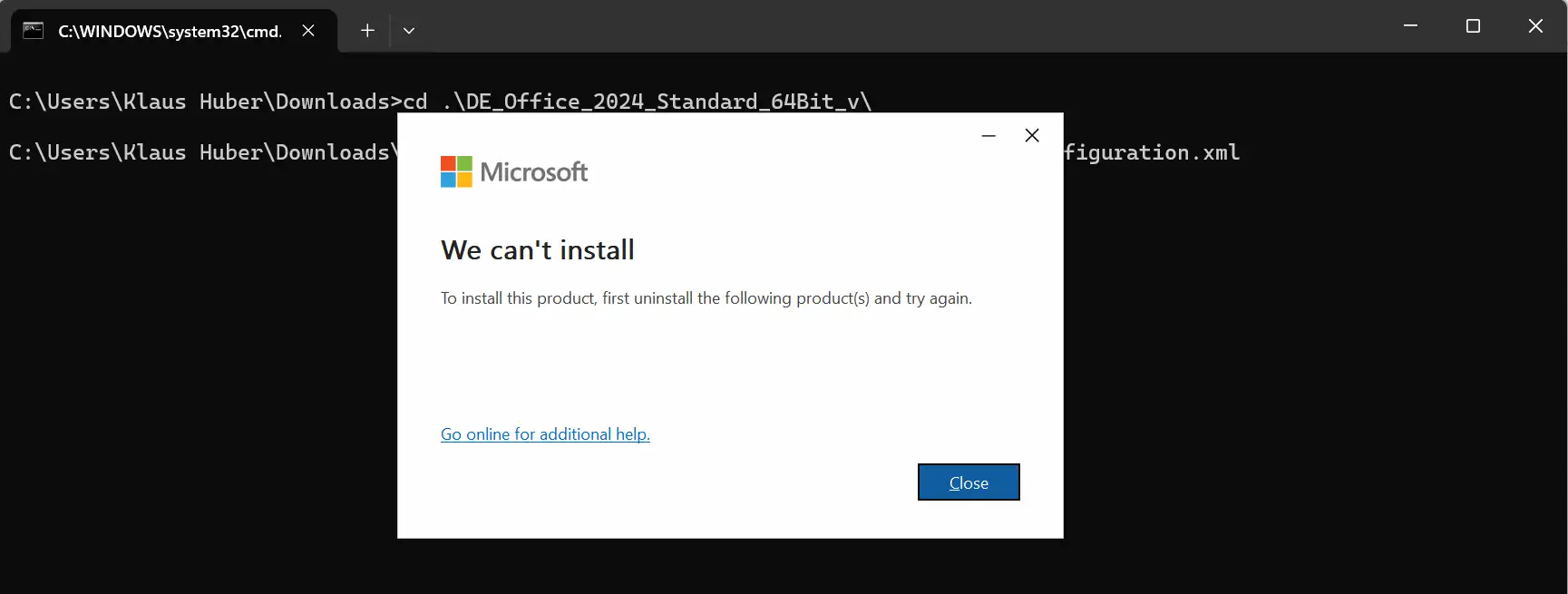 Wenn und sobald bei der Installation von Microsoft Office 2024 die Meldung erscheint,