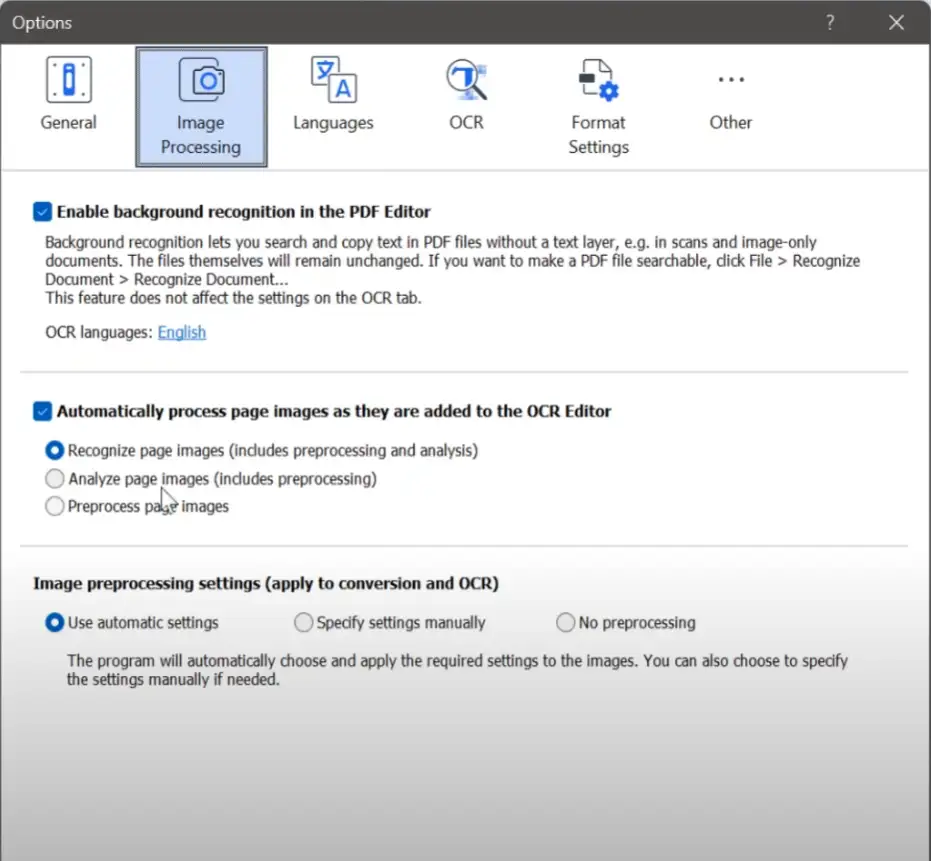 - Image formats: TIFF, JPEG, JPEG 2000, JBIG2, PNG, BMP, PCX, DjVu