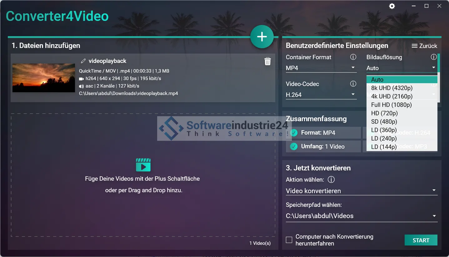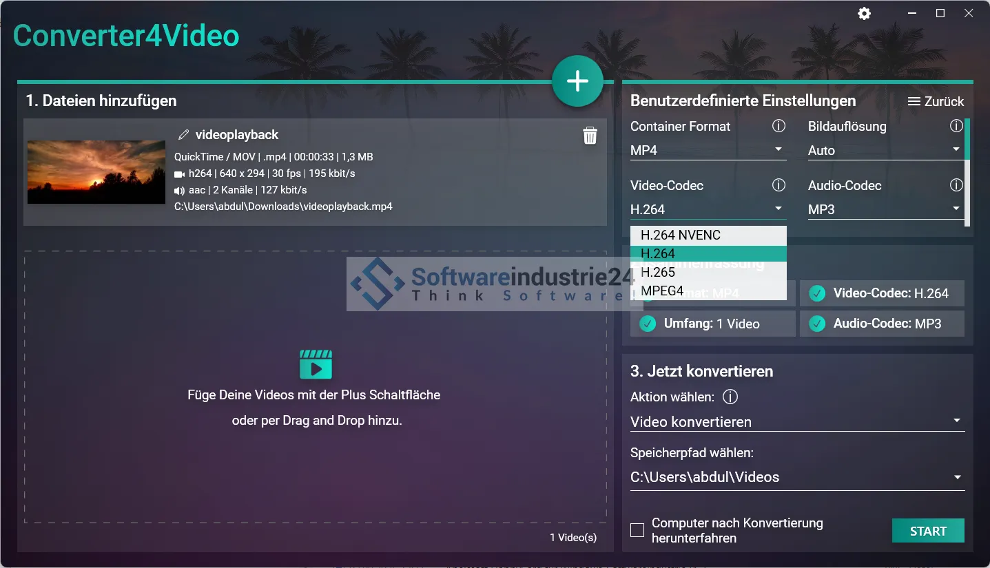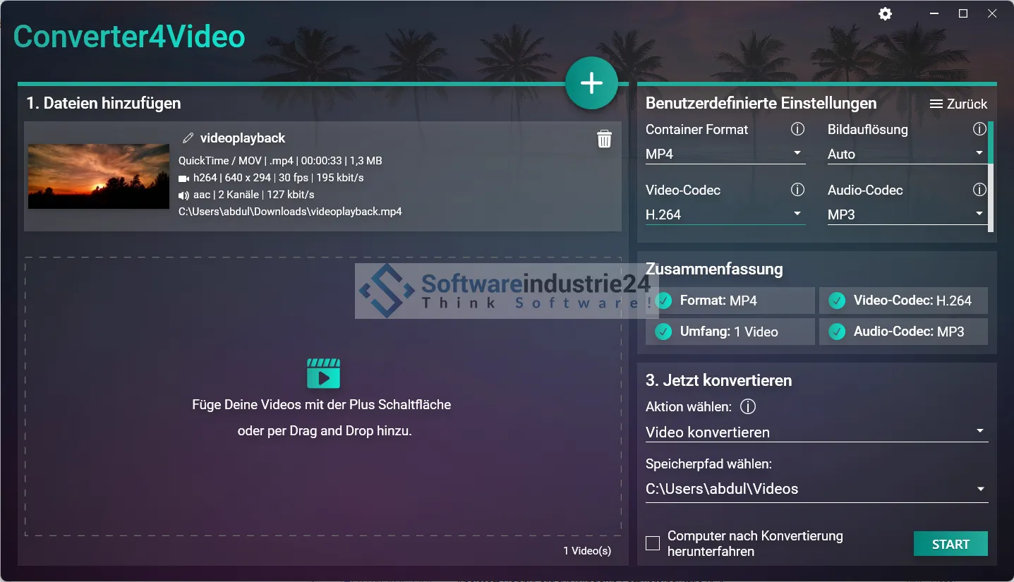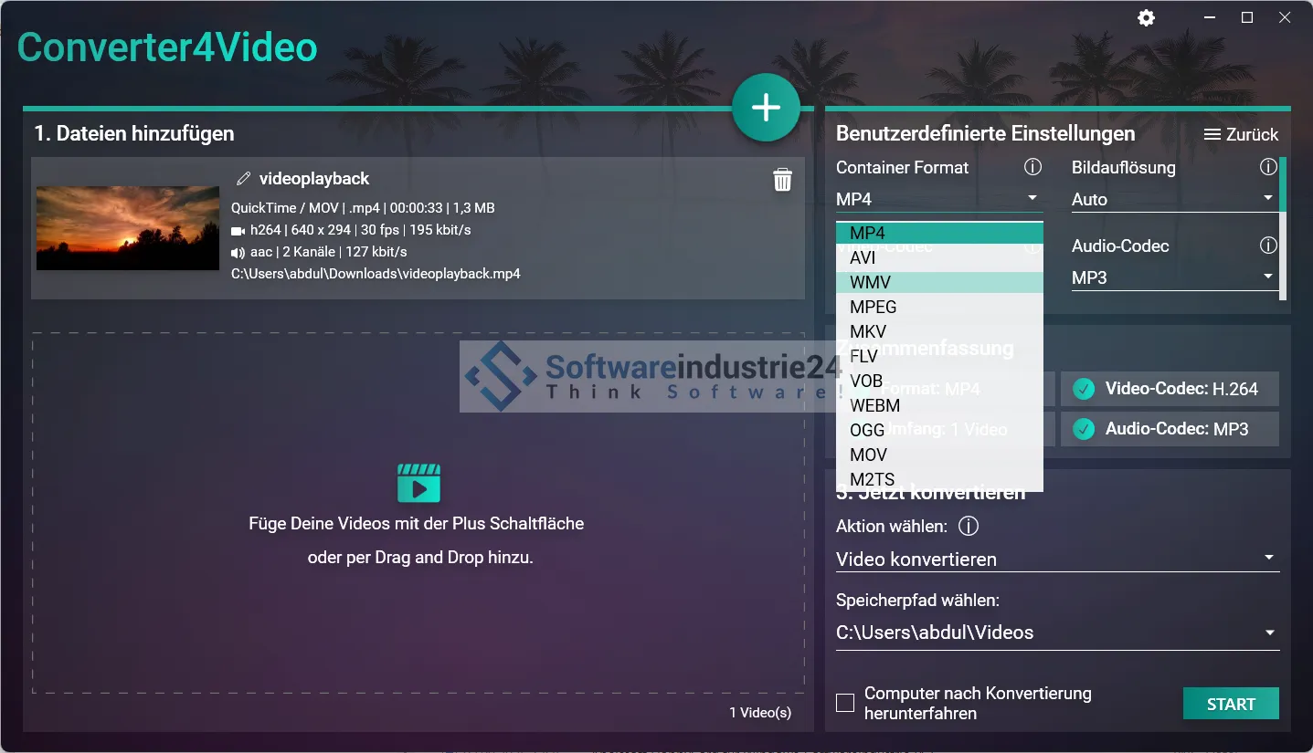 For users who have specific requirements, Abelssoft Converter4Video offers a range of customization options. You can fine-tune the bitrate, resolution, frame rate, and other parameters to ensure that your converted videos are exactly as you want them. This flexibility makes it the ideal choice for professional users who need maximum control over their video files.