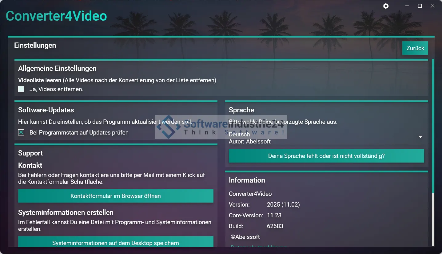 Abelssoft is known for its reliable software and top-notch customer service. With Converter4Video, you not only get a powerful conversion tool, but also the peace of mind that you will receive support if you have any questions or problems. Our dedicated support team is available to ensure that your experience is smooth.