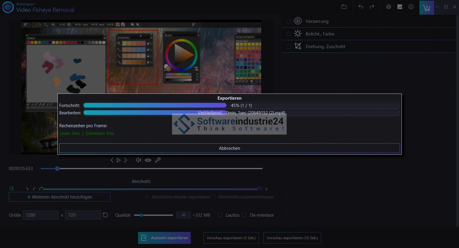 Ashampoo Video Fisheye Removal supports a wide range of video formats, including popular formats such as MP4, AVI, WMV, and MOV. You can also share your videos directly from the software by uploading them to YouTube or Vimeo. Another advantage of Ashampoo Video Fisheye Removal is its fast processing speed. The software uses hardware acceleration to speed up processing and deliver results faster.