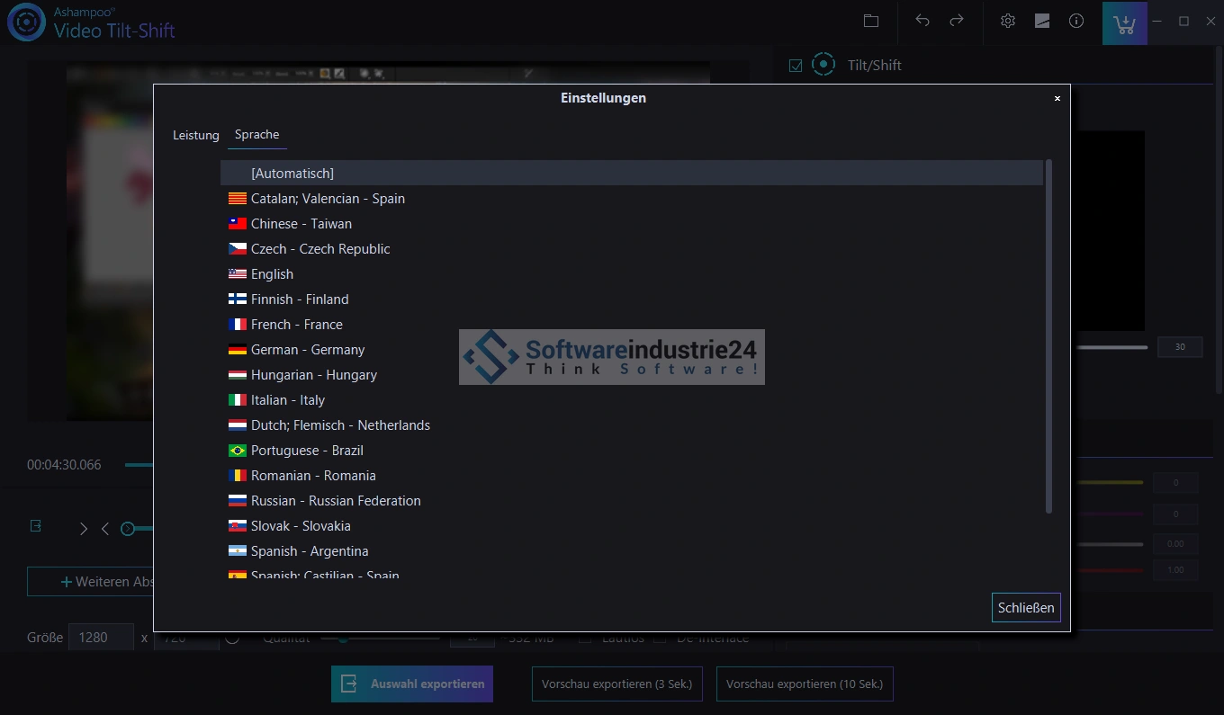 In addition, Ashampoo Video Tilt-Shift offers a range of other video editing features and tools. For example, you can adjust brightness, contrast, color saturation, and other parameters to optimize the visual appearance of your videos. You can also add transitions, text overlays, music, and other effects to give your videos a professional look. Ashampoo Video Tilt-Shift is suitable for both beginners and advanced users. The user interface is designed to be user-friendly and offers a clear and concise structure. With the extensive editing tools and effects, you can quickly and easily optimize your videos and give them an impressive visual impact.