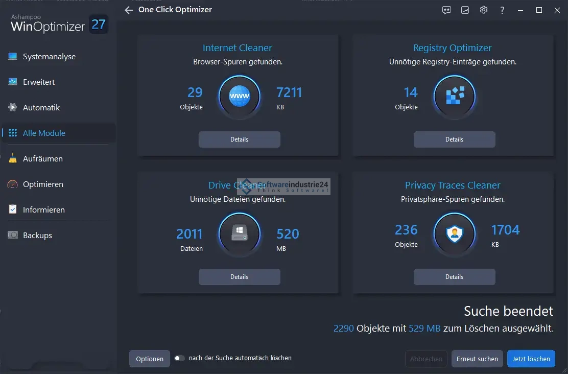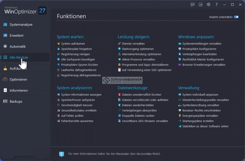 Ashampoo WinOptimizer 27 is much more than just a simple system optimization tool. With its comprehensive functions for system analysis, deep cleaning, data protection and individual optimization, it offers everything you need to keep your PC running at peak performance.