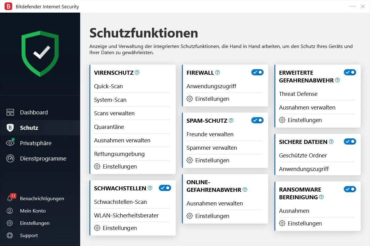 Overall, Bitdefender Internet Security is a comprehensive security solution that provides effective protection against viruses, malware, ransomware, and other online threats. With its versatile features, world-class virus protection, robust firewall, phishing protection, VPN service, and many other security features, you can surf, work, and protect your personal data with peace of mind.