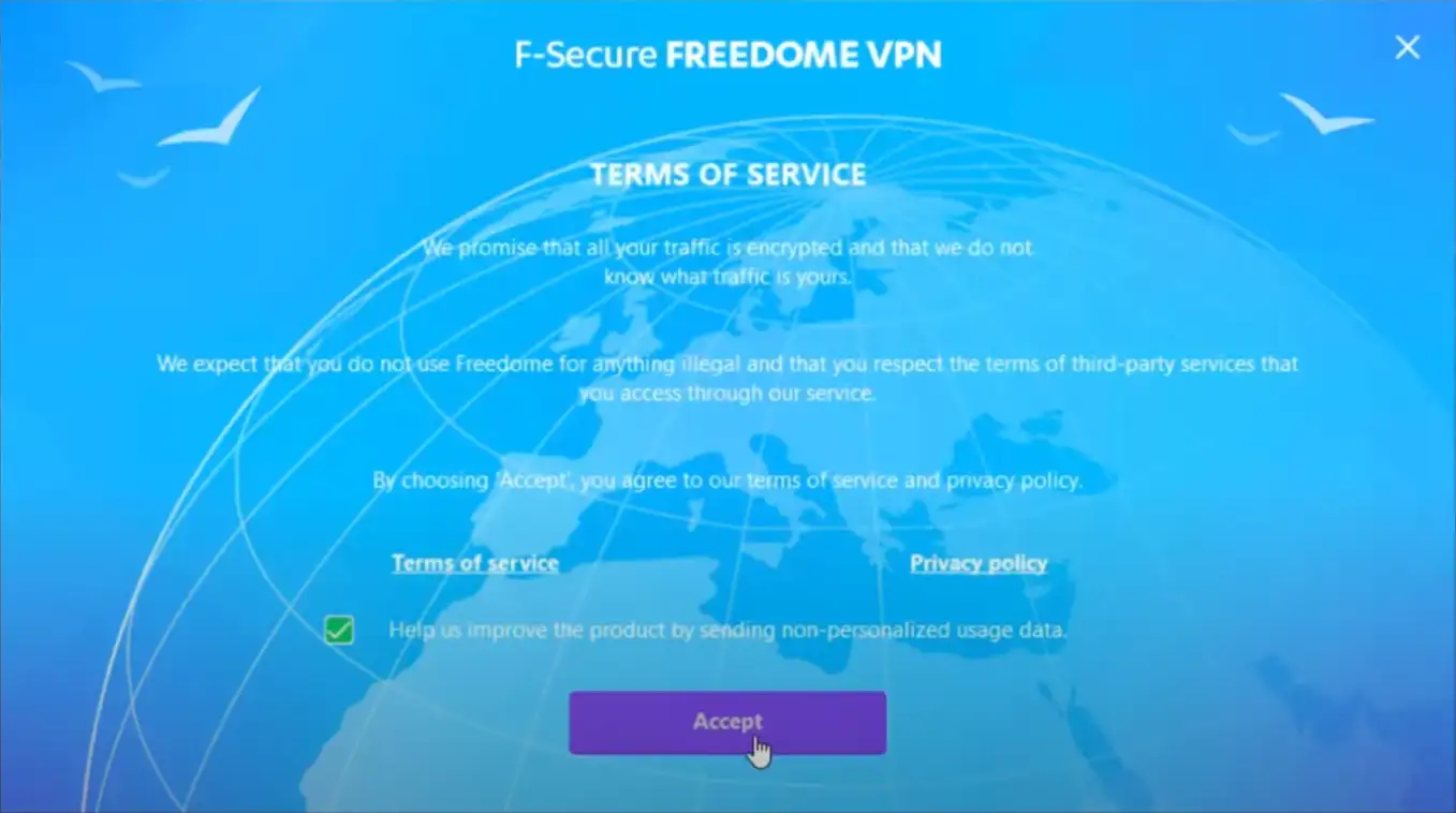 Please note that F-Secure Freedome VPN is a resource-friendly program that runs well even on older devices. However, if your device is very old or does not have enough storage space, this may affect the performance of F-Secure Freedome VPN.