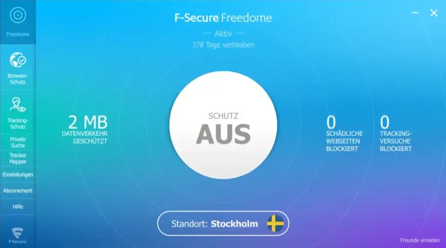 The software from F-Secure Freedome VPN is a secure product from European distribution sources that offers you a reliable and comprehensive security solution for your devices.