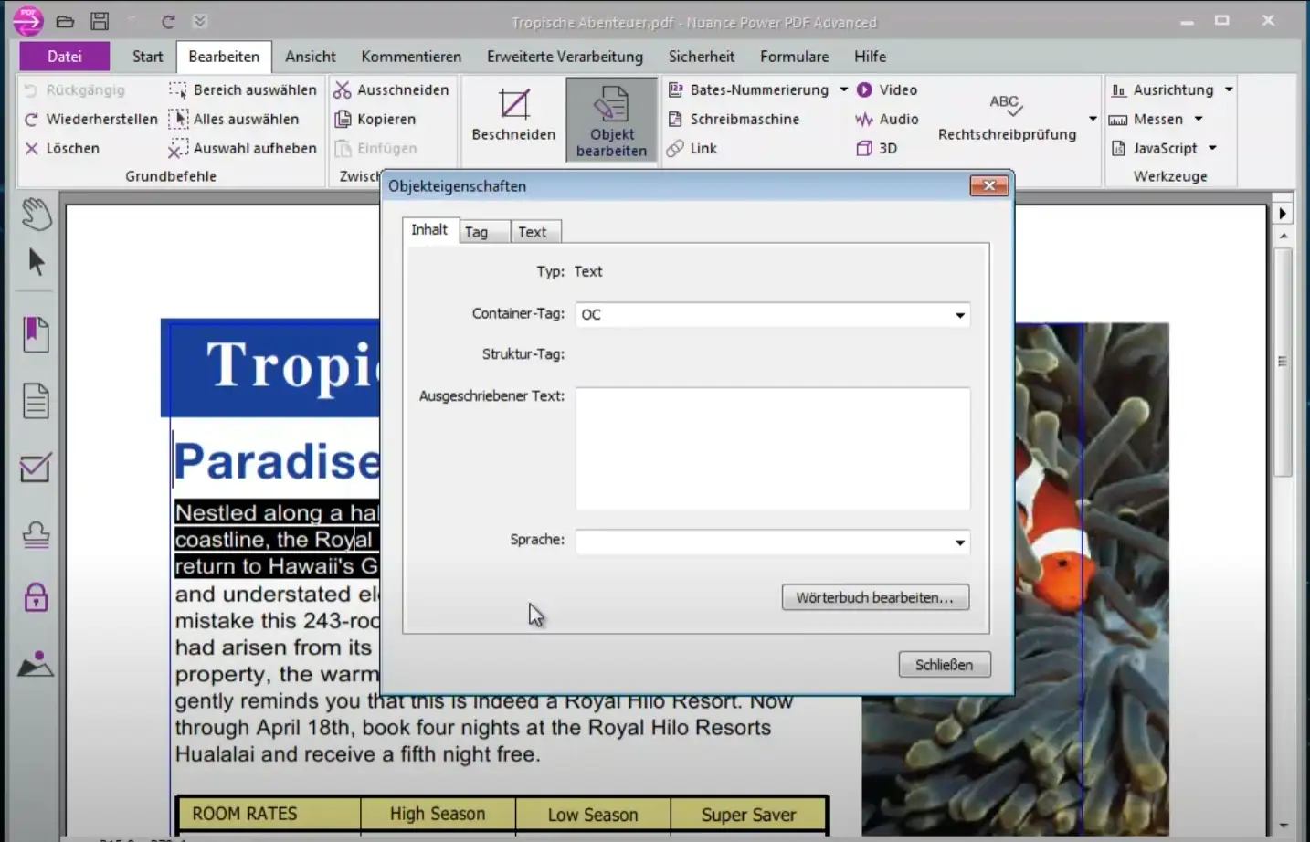 Nuance PDF-Converter Professional 8 | Windows ist ein umfassendes PDF-Tool, das speziell für Geschäftsanwender entwickelt wurde. Es ermöglicht die einfache Konvertierung von PDF-Dateien in andere Formate wie Microsoft Word, Excel und PowerPoint, sowie in HTML und anderen gängigen Dateiformaten. Darüber hinaus verfügt die Software über eine Vielzahl von Funktionen für die Bearbeitung und Anpassung von PDF-Dateien, die es Benutzern ermöglichen, ihre Dokumente schnell und einfach zu erstellen und zu bearbeiten. Eines der herausragenden Merkmale von Nuance PDF-Converter Professional 8 | Windows ist seine leistungsstarke OCR-Technologie, die es ermöglicht, gescannte Dokumente in durchsuchbare PDF-Dateien umzuwandeln. Die OCR-Funktion kann auch Text in Bildern erkennen und extrahieren, so dass der Inhalt in einer bearbeitbaren Form zur Verfügung steht. Die Software bietet auch eine umfangreiche Palette von Bearbeitungsfunktionen, einschließlich der Möglichkeit, Text, Bilder und Grafiken in PDF-Dateien zu bearbeiten und anzupassen. Benutzer können auch Seiten hinzufügen oder löschen, Seiten drehen oder zuschneiden und PDF-Dateien zusammenführen oder teilen.