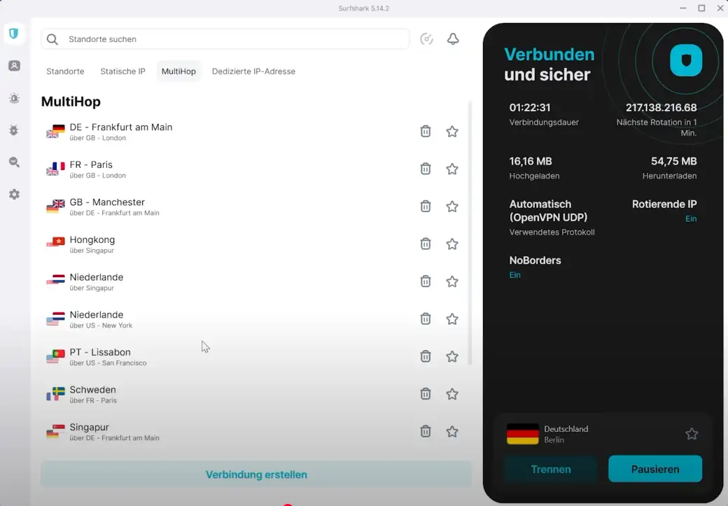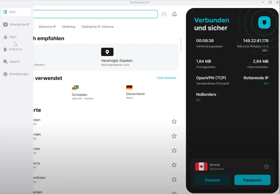 The term virtual private network is a little misleading. It is by no means a private network. In IT, the term “private” means “protected.” A VPN is therefore a protected network. The modern VPN from Surfshark uses the IKEv2/IPsec protocol for transmission. This is a latest-generation encryption technology. If, contrary to expectations, a hacker manages to intercept the data during transmission, they will not be able to do anything with it. The encryption algorithm is so strong that it would take decades to decrypt.