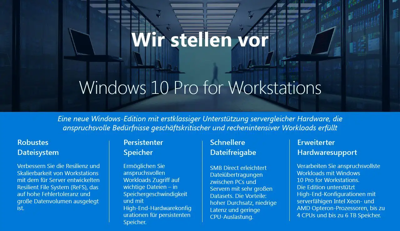 Windows 10 Pro for Workstations is a special version of the popular Windows 10 operating system designed specifically for demanding business environments and performance-hungry workloads. This edition offers a wealth of features and optimizations that improve performance, stability and reliability on workstations and high-end computers. One of the most notable features of Windows 10 Pro for Workstations is support for up to four CPUs with 6TB of RAM. This is particularly useful for compute-intensive tasks such as 3D rendering, video editing, simulations and complex data processing where maximum performance is required. The file system technology ReFS (Resilient File System) is also included in this edition. ReFS is specially designed for large data storage and offers enhanced data security and fault tolerance. This minimizes the chances of data loss and significantly increases data integrity. In addition, Windows 10 Pro for Workstations also offers SMB Direct mode, which speeds up the network transfer of data and reduces CPU load. This makes file transfers over the network faster and more efficient, which is particularly beneficial in companies with large file servers.