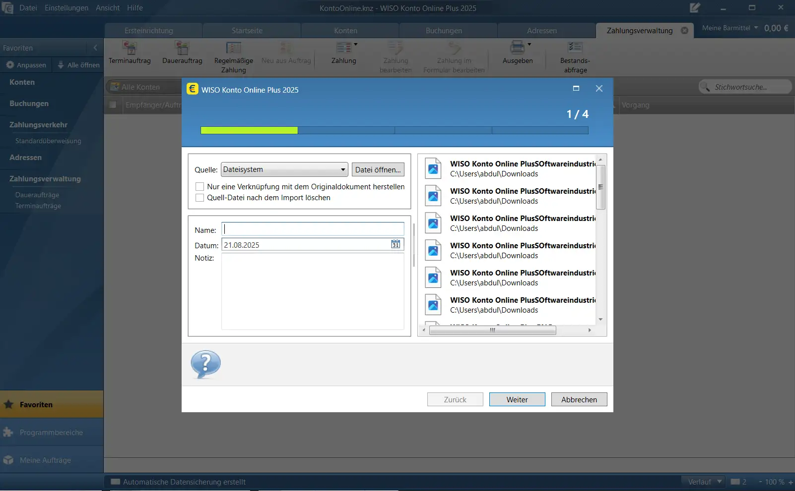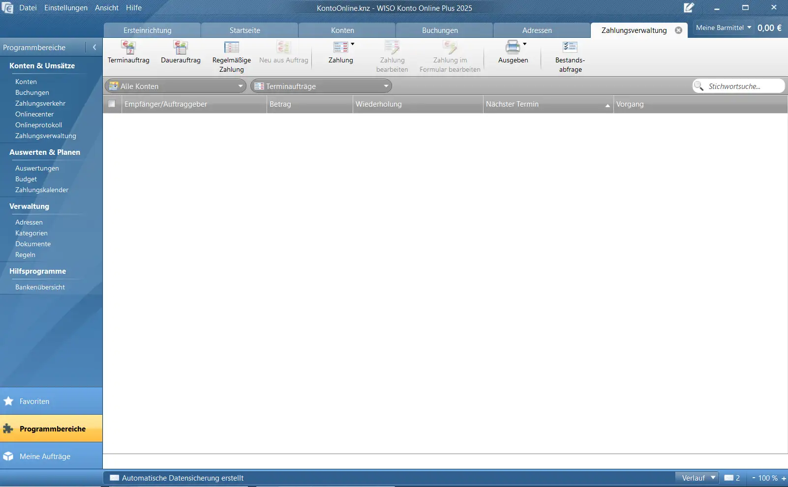 WISO Konto Online Plus 365 is powerful and user-friendly banking software that helps you manage your finances easily and conveniently. With this software, you can consolidate all your bank accounts in one application, make transfers and direct debits, set up standing orders, and view your account statements.