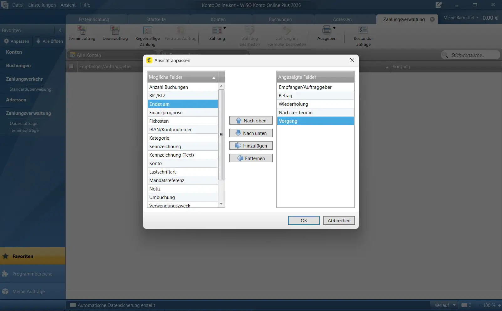 - FinTS interface: Connect your bank accounts to the FinTS interface.