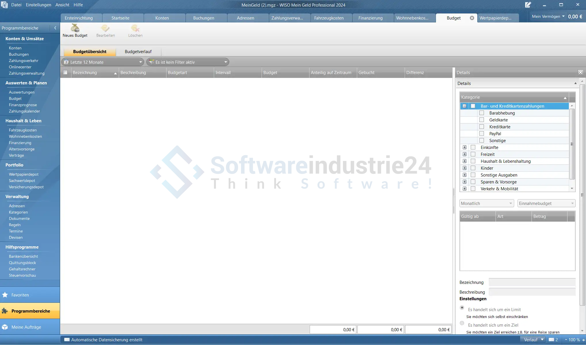 - Comprehensive financial management: With WISO Mein Geld Professional 2024, you have all the important functions for managing your finances in one place. From recording income and expenses to managing accounts, securities, and assets, this software offers everything you need to organize your financial affairs.
