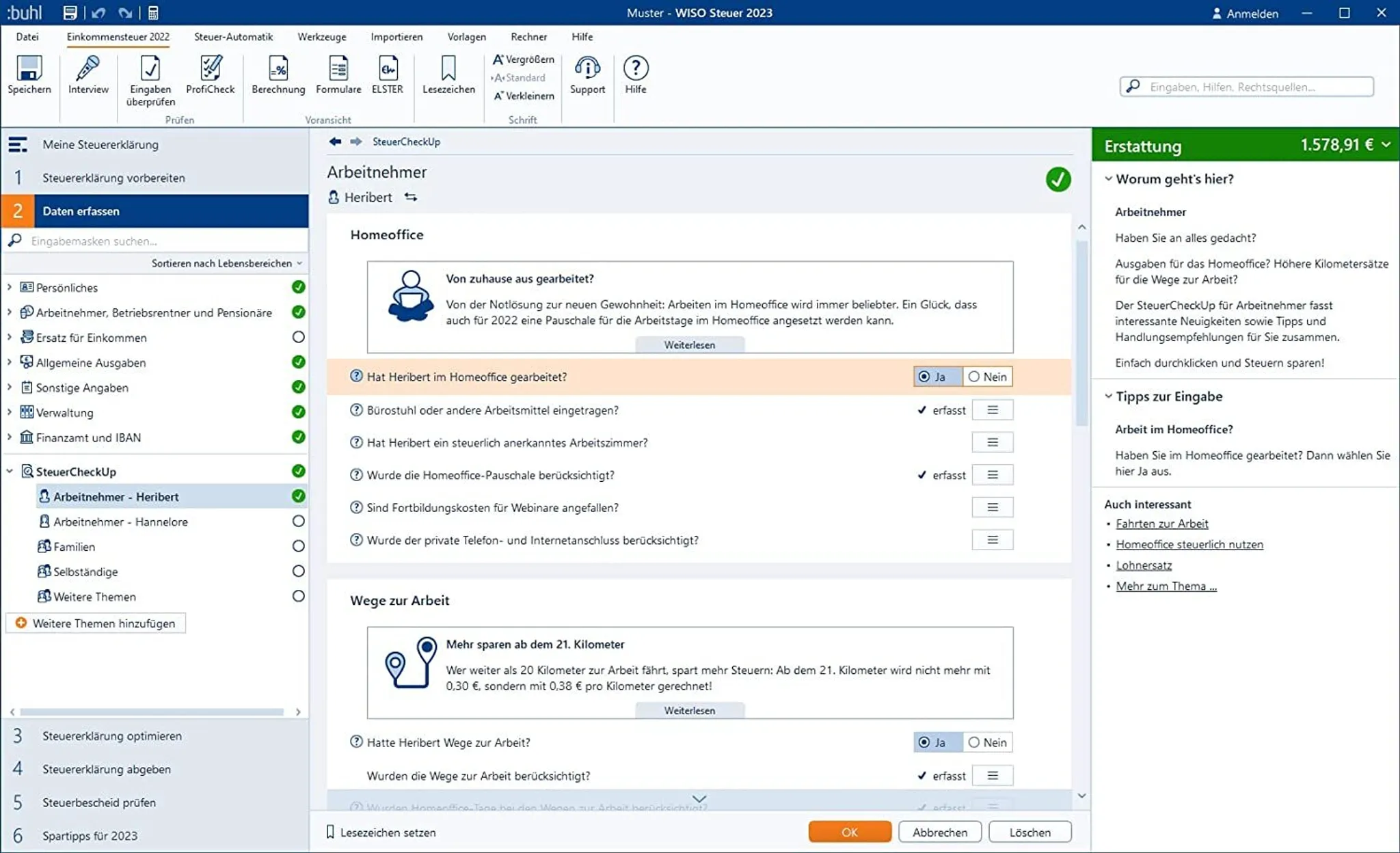 WISO Arrendador 2023 le ofrece todo lo que necesita para la creación cómoda de su declaración de impuestos: