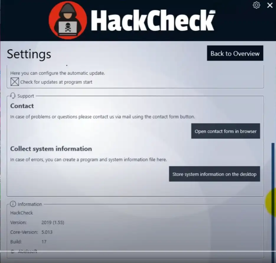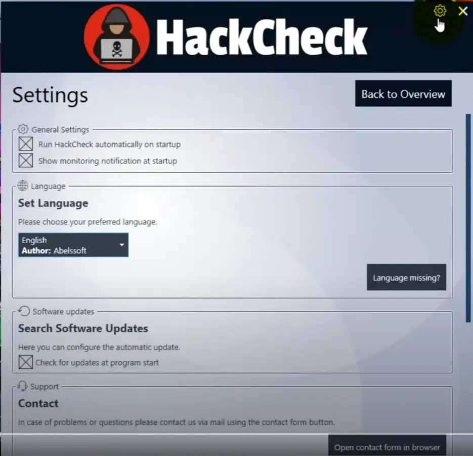 Chez Abelssoft, nous attachons une grande importance à la satisfaction de nos clients. Notre équipe d'assistance dédiée est toujours disponible pour répondre à vos questions et vous aider à résoudre vos problèmes. Nous sommes fiers d'offrir un service d'assistance de qualité pour garantir le bon déroulement de votre expérience avec HackCheck.