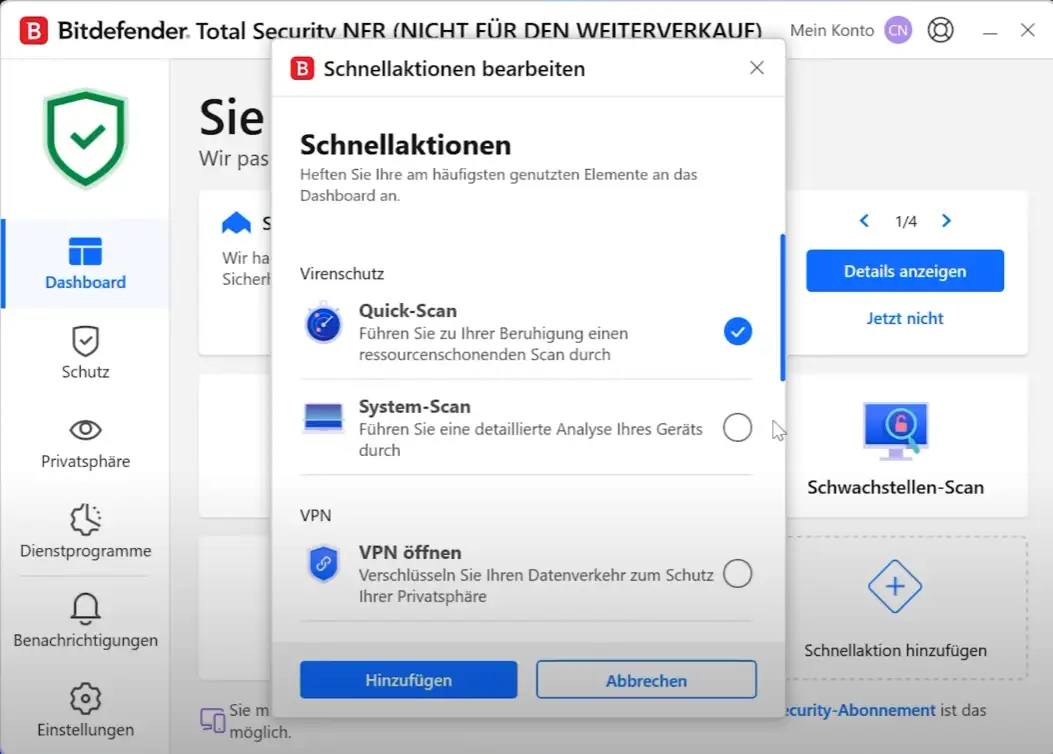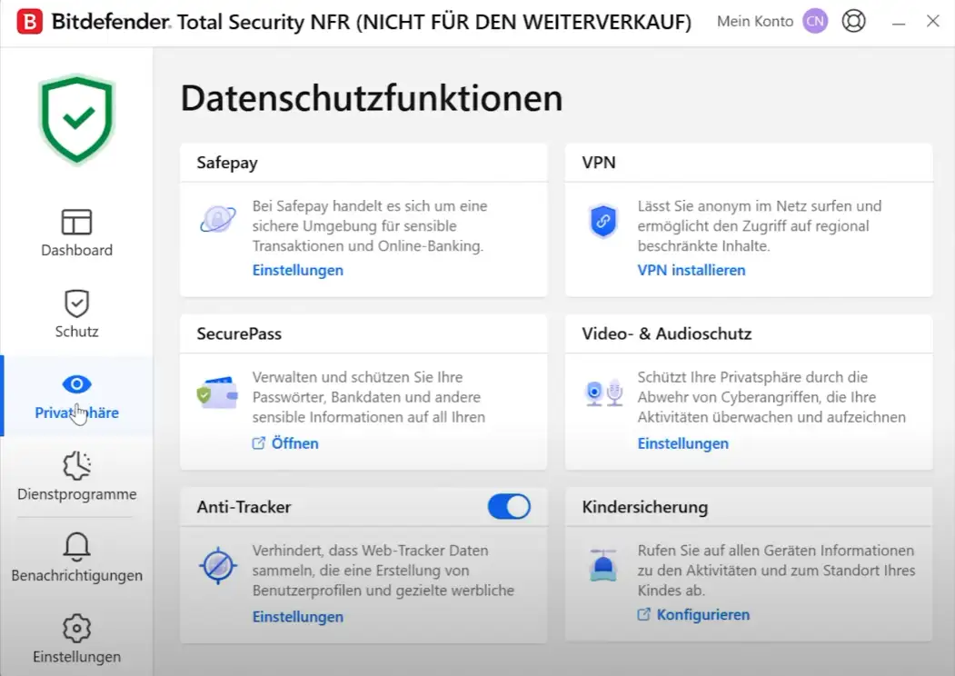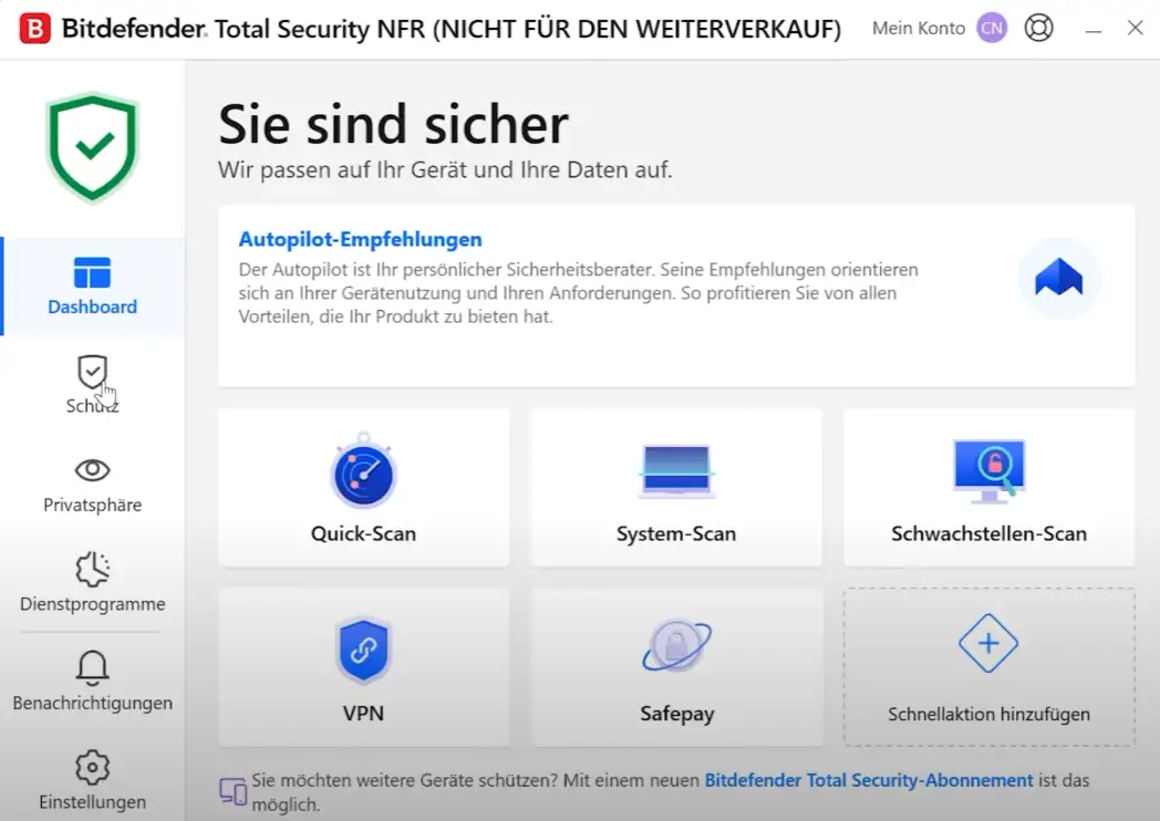 - Reisende: Bitdefender Total Security ist auch für Reisende geeignet. Die integrierte VPN-Funktion ermöglicht eine sichere Verbindung zum Internet, selbst in unsicheren Netzwerken. Dies bietet zusätzlichen Schutz vor Identitätsdiebstahl und anderen Online-Bedrohungen, während Sie unterwegs sind.