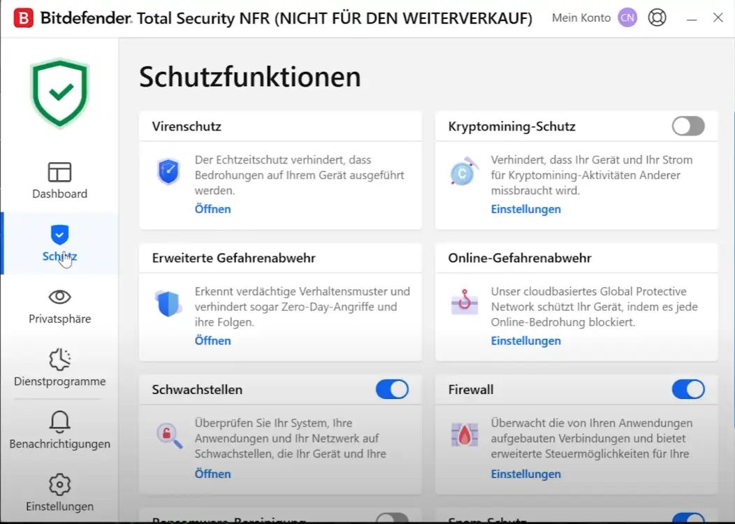 Insgesamt bietet Bitdefender Total Security eine umfassende Palette von Funktionen, um Ihre Geräte und Ihre digitale Sicherheit zu schützen. Es kombiniert erstklassige Erkennungstechnologie mit einer benutzerfreundlichen Benutzeroberfläche und geringer Systembelastung. Mit Bitdefender Total Security können Sie sich beruhigt zurücklehnen und wissen, dass Ihre digitale Welt sicher ist.
