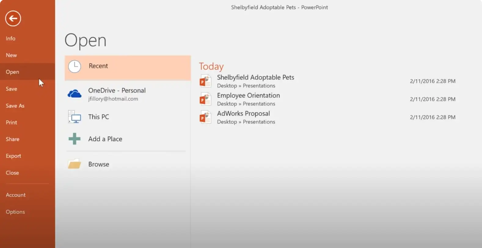 - Utilisateurs professionnels : les entreprises et les organisations peuvent utiliser PowerPoint 2016 pour créer des présentations pour des réunions, des formations, des conférences ou des présentations pour des clients. Grâce à l'intégration de Microsoft OneDrive et à une collaboration améliorée, les utilisateurs peuvent partager et collaborer sur des présentations en temps réel.