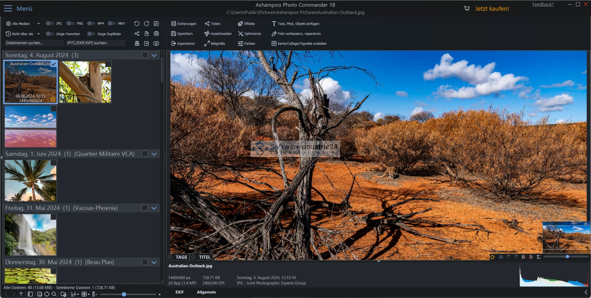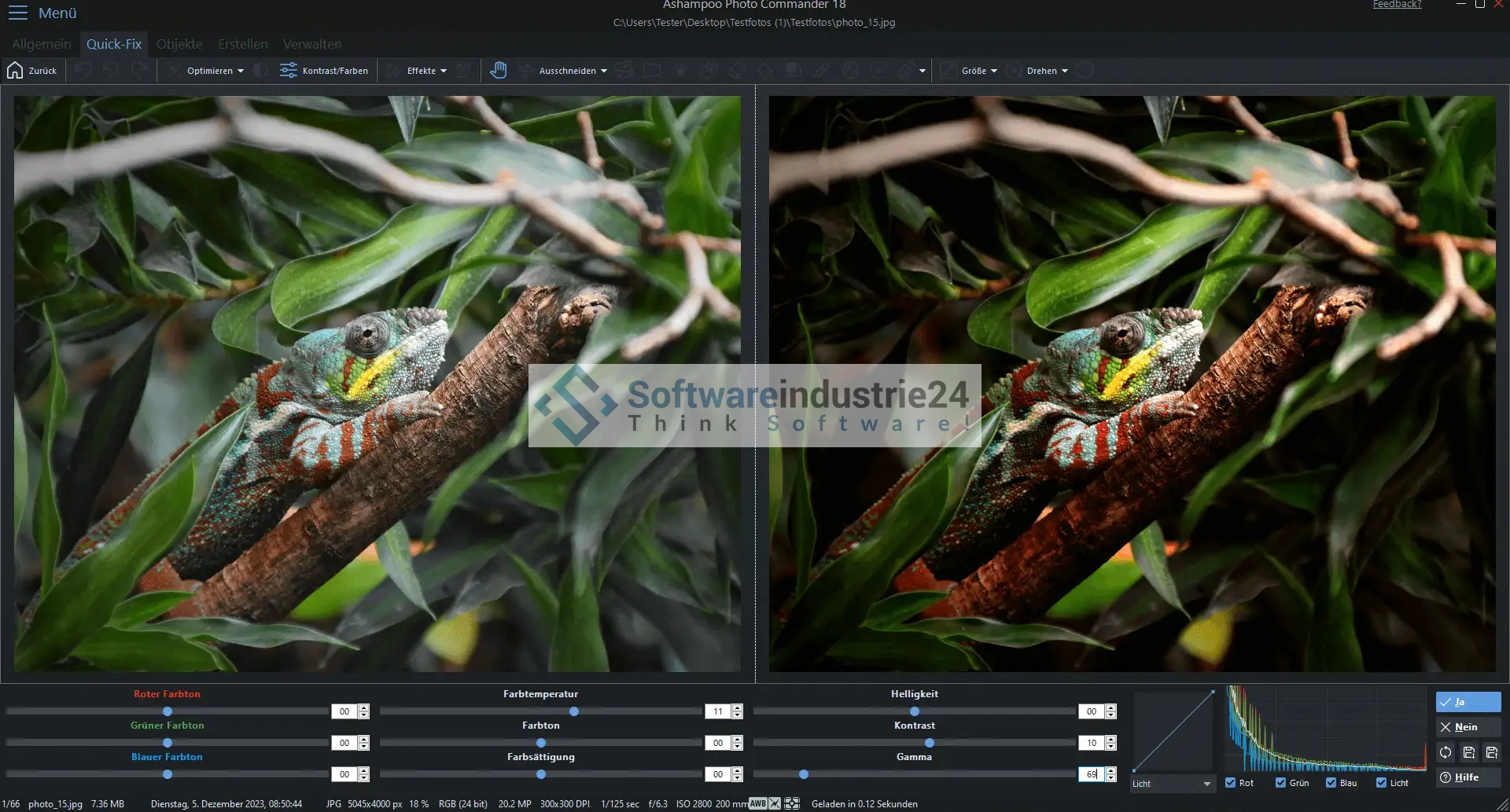 I potenti strumenti di modifica delle immagini consentono di ottimizzare le foto con una qualità professionale. Dalle regolazioni di base come l'esposizione e il contrasto al ritocco avanzato, Ashampoo Photo Commander 17 offre tutto ciò che serve per ottenere risultati impressionanti.