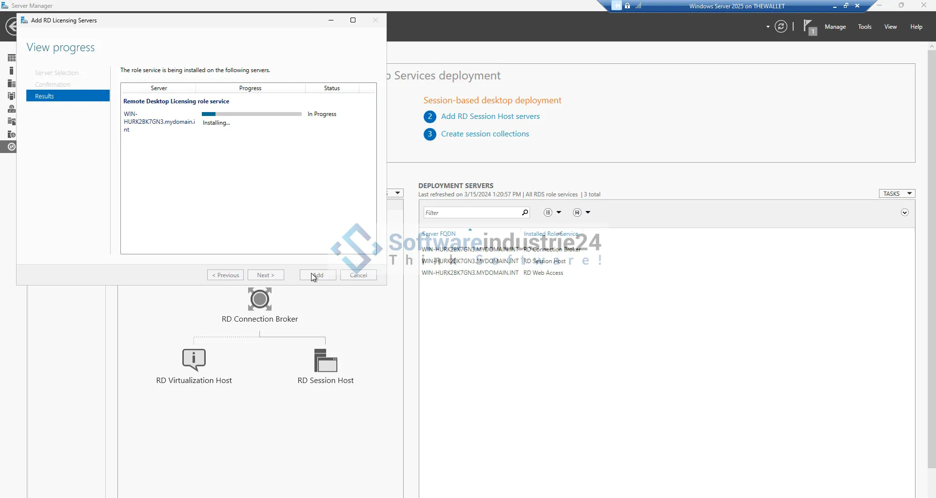 Installazione del ruolo RDS: Installazione dei ruoli e delle funzionalità necessarie sul server Windows.