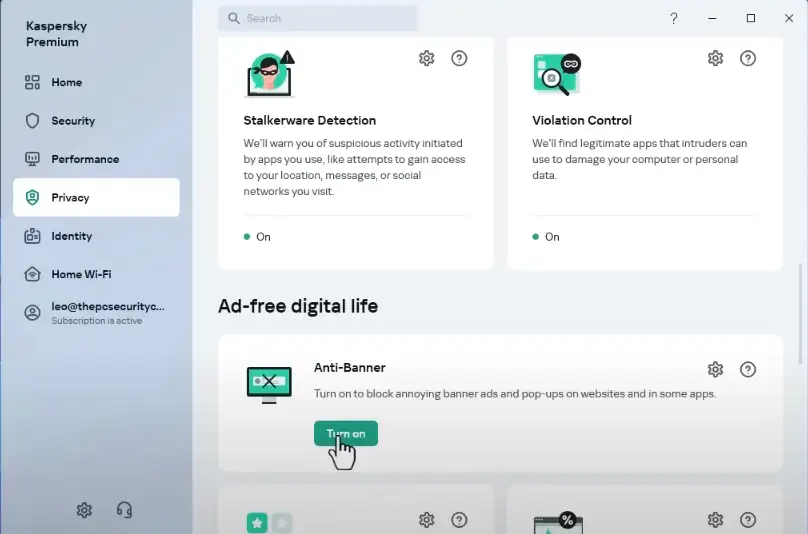 Integrierter VPN-Dienst für anonymes Surfen: Der in Kaspersky Premium & VPN integrierte VPN-Dienst verschlüsselt Ihre Internetverbindung und schützt Ihre Privatsphäre online. Surfen Sie anonym, um Geobeschränkungen zu umgehen und Ihre persönlichen Daten vor neugierigen Blicken zu schützen.