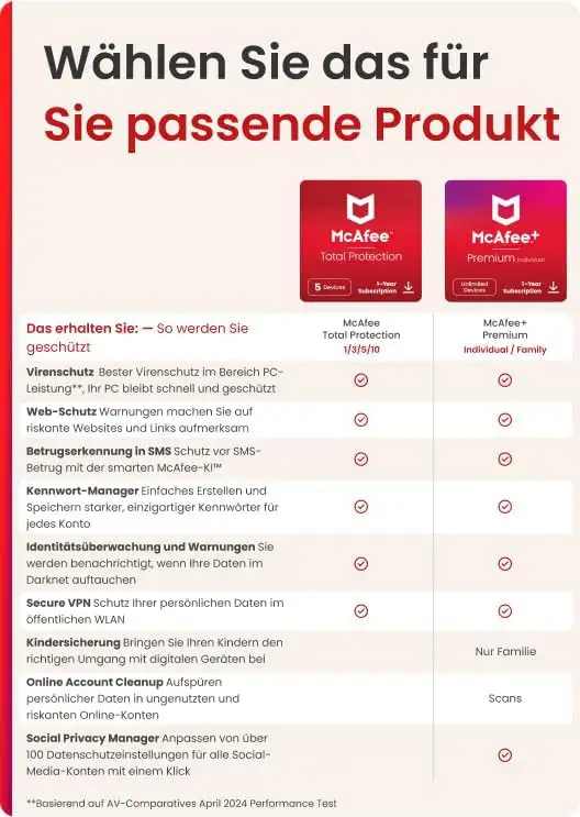 - Betriebssystem: McAfee Antivirus Plus ist kompatibel mit Windows 11, Windows 10, Windows 8.1, oder höher. Für Mac-Systeme ist macOS 10.12 oder höher erforderlich.
