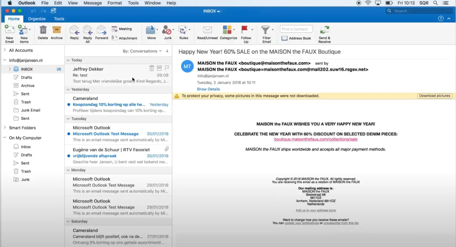 Outlook 2016 | Mac bietet auch eine benutzerfreundliche Oberfläche, die es einfach macht, E-Mails zu schreiben, zu formatieren und zu senden. Benutzer können ihre E-Mails mit verschiedenen Schriftarten, Farben und Stilen personalisieren, um sicherzustellen, dass ihre Nachrichten ansprechend und professionell aussehen. Die Anwendung verfügt auch über eine automatische Rechtschreibprüfung und eine Autokorrektur-Funktion, um sicherzustellen, dass die E-Mails frei von Fehlern sind. Darüber hinaus verfügt Outlook 2016 | Mac über leistungsstarke Funktionen zur automatischen Organisation von E-Mails. Mit der Funktion "Intelligente Ordner" können Benutzer E-Mails automatisch in separate Ordner sortieren lassen, basierend auf Kriterien wie Absender, Betreff und Inhalt. Dadurch wird die Verwaltung von E-Mails noch einfacher und effizienter. Die Funktion "Clutter" sortiert E-Mails automatisch in einen separaten Ordner, basierend auf der Häufigkeit, mit der Benutzer mit diesen E-Mails interagieren, um sicherzustellen, dass der Posteingang nur wichtige E-Mails enthält.