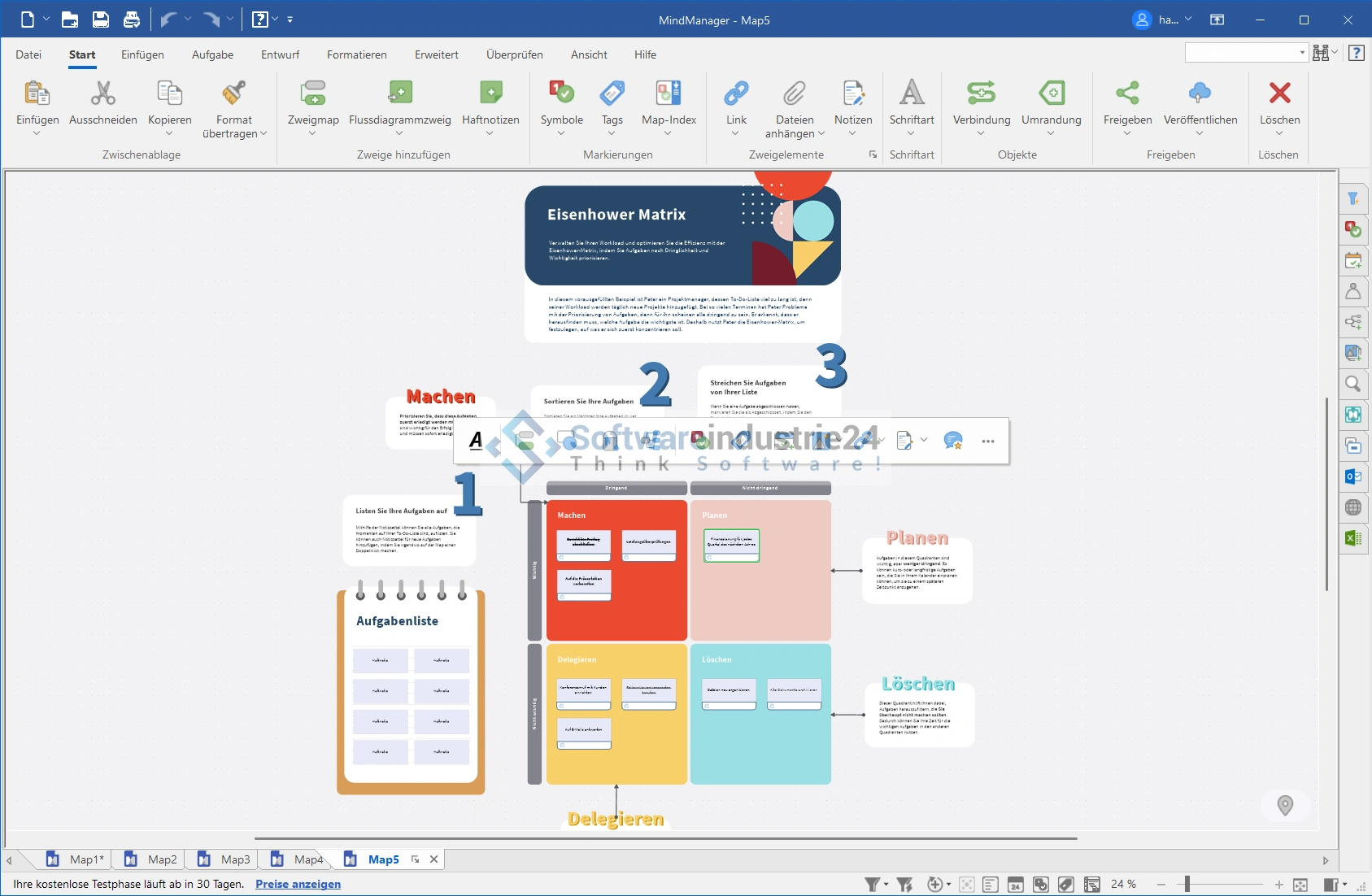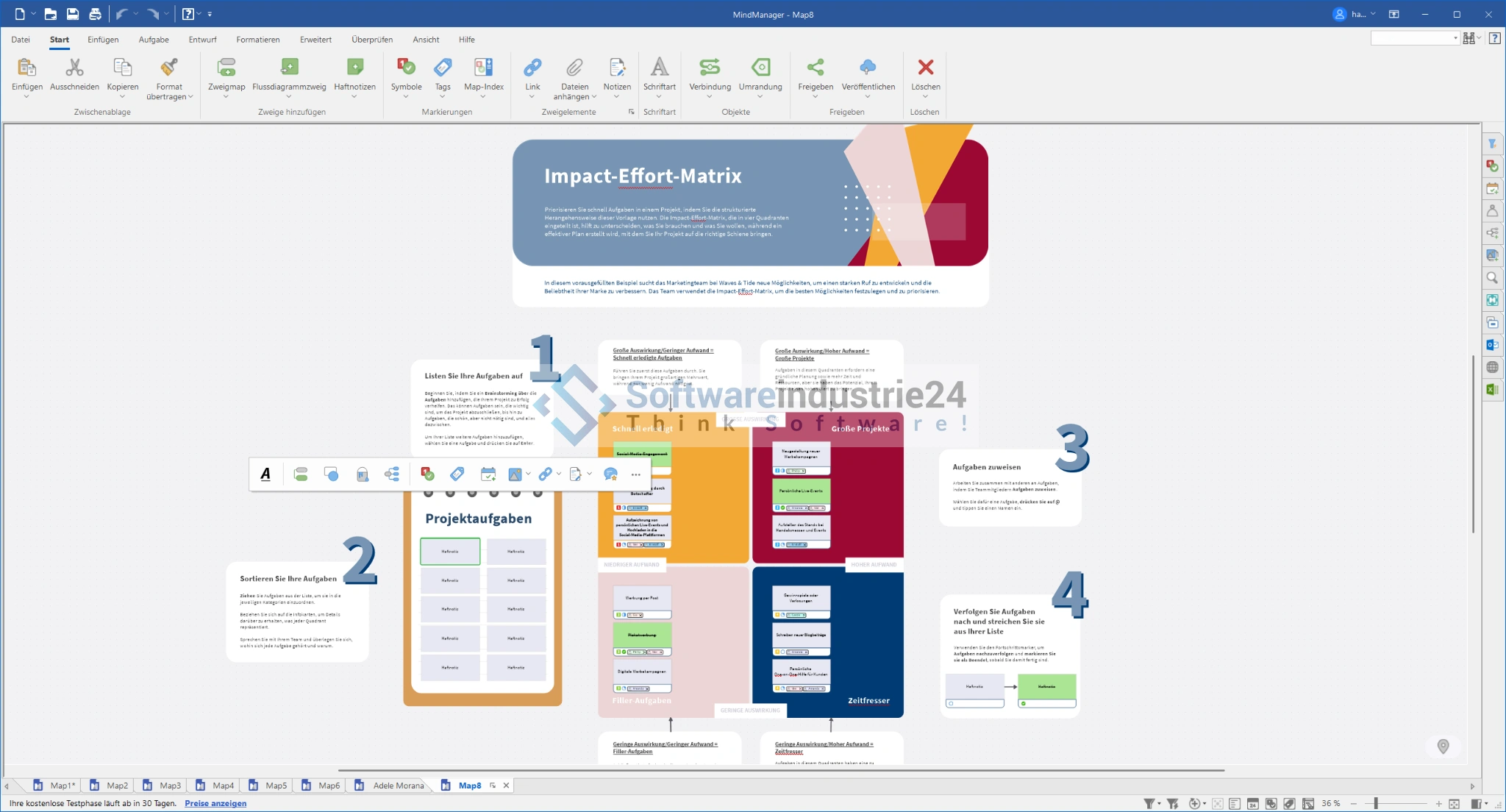 Effizientes Arbeiten: Durch die Kombination von Mind Mapping und Projektmanagement-Tools ermöglicht MindManager 22 Professional ein effizientes Arbeiten und eine klare Strukturierung von Aufgaben.