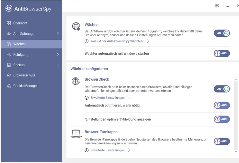 Abelssoft AntiBrowserSpy został zaprojektowany z myślą o łatwości użytkowania. Intuicyjny interfejs użytkownika ułatwia dostosowanie ustawień prywatności i maksymalizację prywatności w zaledwie kilku krokach. Nawet mniej obeznani z technologią użytkownicy mogą skorzystać z tego potężnego narzędzia.