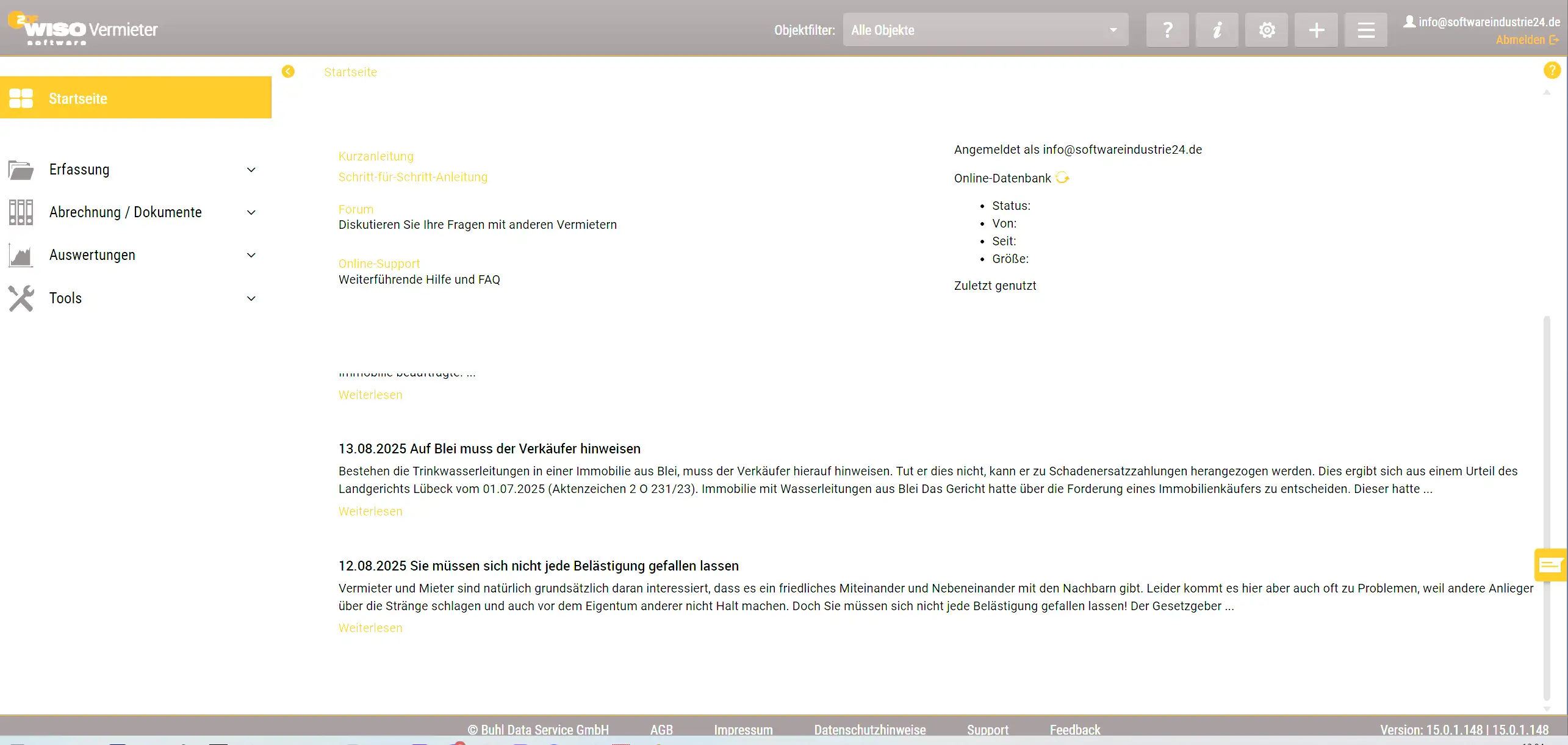 In der heutigen Zeit stehen private Vermieter vor vielfältigen Herausforderungen: von der Erstellung rechtssicherer Nebenkostenabrechnungen über die Verwaltung von Mietverträgen bis hin zur korrekten Erfassung von Einnahmen und Ausgaben. Mit WISO Vermieter 365 für Windows bietet Buhl eine leistungsstarke Softwarelösung, die speziell auf die Bedürfnisse privater Vermieter zugeschnitten ist und den Verwaltungsaufwand erheblich reduziert.