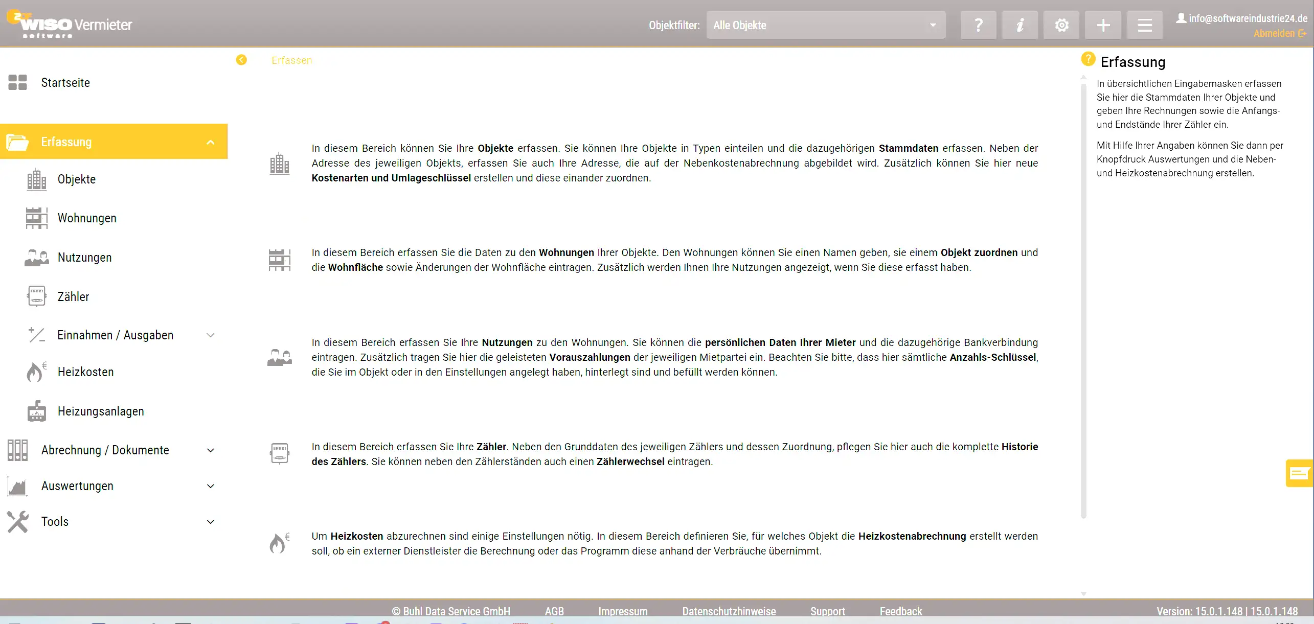 Mit WISO Vermieter-Web können Sie Ihre Daten auch online verwalten und haben somit jederzeit und von überall Zugriff auf Ihre Informationen. Dies ermöglicht es Ihnen, Zählerstände direkt vor Ort mit Ihrem Tablet zu erfassen oder Abrechnungen bequem von unterwegs zu erstellen.